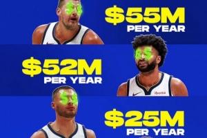 掘金首发五人薪资爆炸!约基奇&穆雷平均年薪5000万+ 三人2000万+