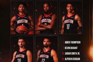 直播吧10月21日讯 火箭主教练乌度卡透露球队新赛季揭幕战对阵雷霆的首发,分别为阿门-汤普森、杜兰特、小贾巴里-史密斯、申京和史蒂文-亚当斯。