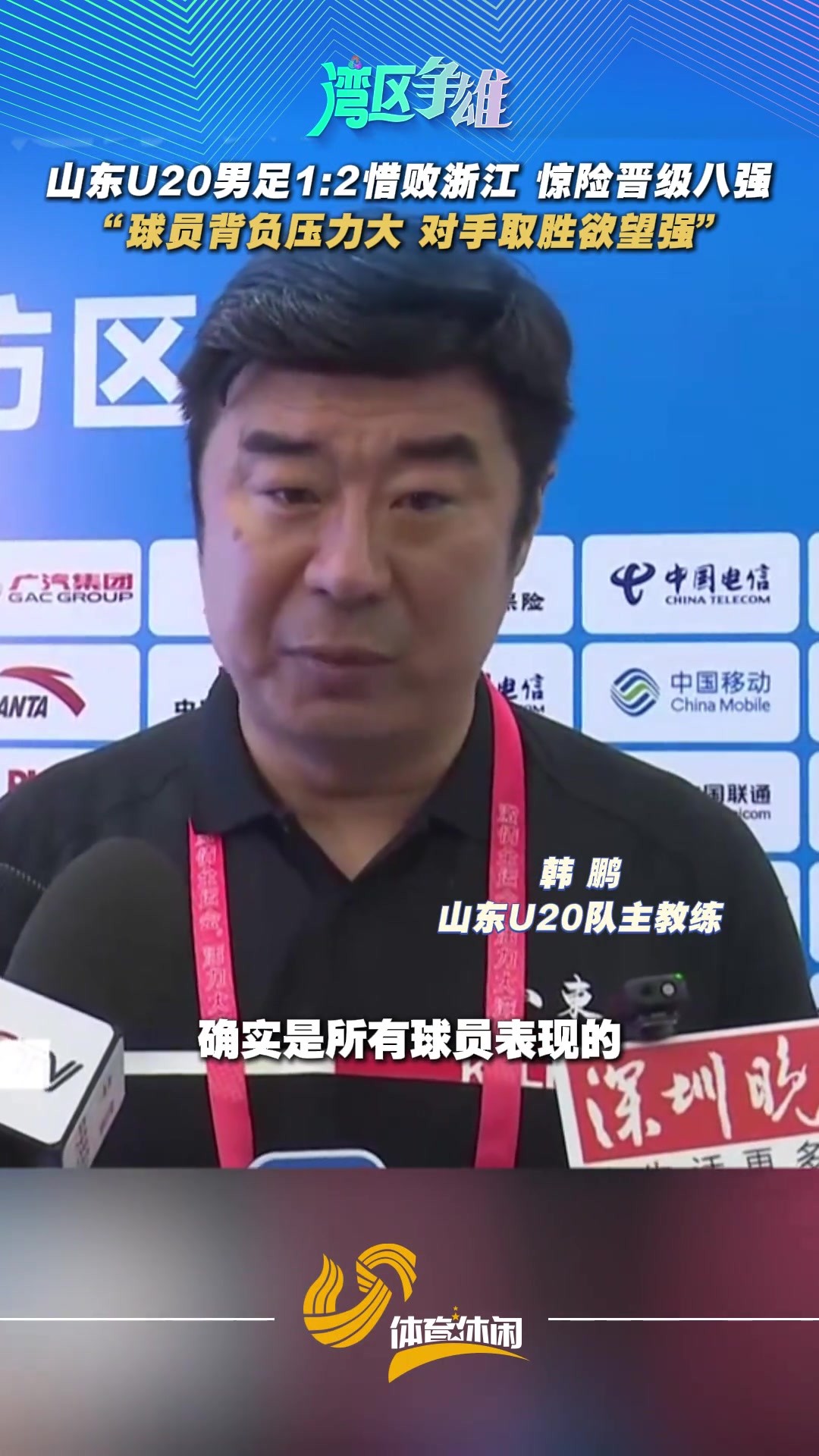山东U20男足1:2惜败浙江,惊险晋级八强,韩鹏:队员背负压力大
